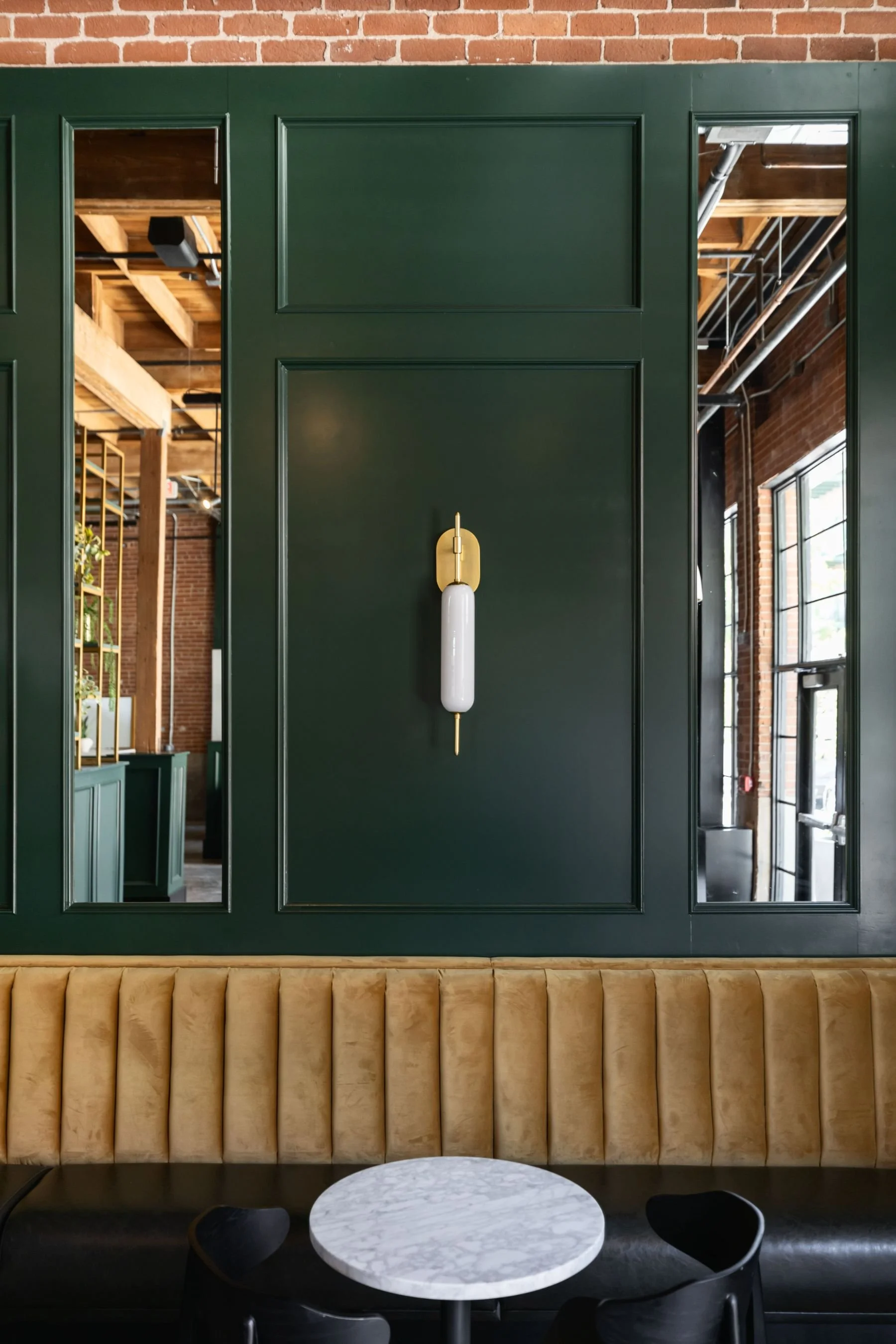 Phoenix, ArizonaTucked into Phoenix’s historic warehouse district, the CCV Café was designed as more than just a coffee stop—it’s a true gathering space created to foster community. We blended art deco inspiration with thoughtful historic preservation, honoring the building’s original character while bringing in bold, modern moments. Deep emerald paneling, brass-accented lighting, and rich textures create a warm, elevated atmosphere that invites people to stay awhile. From the custom millwork to the statement fixtures, every detail was chosen to reflect the vibrancy of the neighborhood and the heart behind the CCV community.