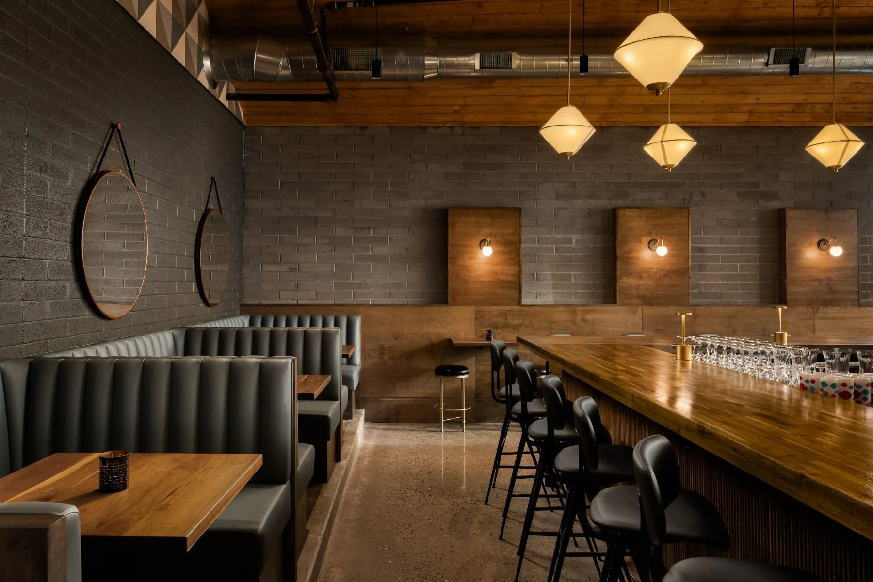 Phoenix, ArizonaCopper & Sage is a modern gastropub with Southern roots, tucked inside a beautifully restored 1940s brick home in the heart of Uptown Phoenix. Designed to feel both elevated and welcoming, the space weaves together deep navy paneling, custom brass lighting, and unique copper details that nod to Arizona’s namesake metal. Guests can enjoy the secluded patio or slip into The Blue Stave—a moody, Gatsby-inspired whiskey lounge with a glowing quartzite bartop and hidden private dining room. Every corner was thoughtfully considered to balance history with refined luxury, down to the local artwork and intimate layout. It’s the kind of place that invites you to linger, sip, and savor—exactly as our team envisioned it.